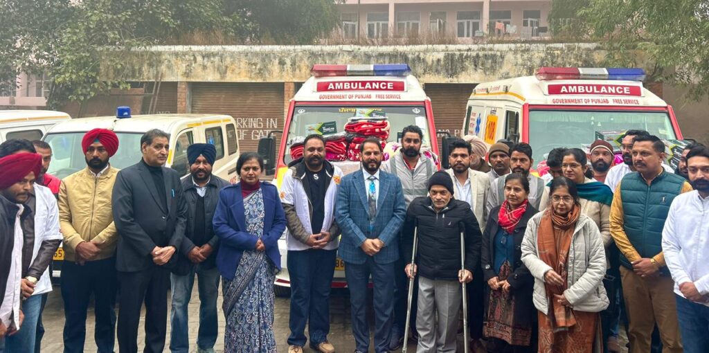 ਬਠਿੰਡਾ, 1 ਜਨਵਰੀ : ਮਰੀਜ਼ਾਂ ਦੀ ਜਾਨ ਬਚਾਉਣ ਵਿੱਚ 108 ਐਬੂਲੈਂਸ ਡਰਾਈਵਰ ਆਪਣਾ ਵਡਮੁੱਲਾ, ਮੁੱਢਲਾ ਅਤੇ ਅਹਿਮ ਰੋਲ ਅਦਾ ਕਰ ਰਹੇ ਹਨ। ਇਨ੍ਹਾਂ ਗੱਲਾਂ ਦਾ ਪ੍ਰਗਟਾਵਾਂ ਡਿਪਟੀ ਕਮਿਸ਼ਨਰ ਸ਼੍ਰੀ ਰਾਜੇਸ਼ ਧੀਮਾਨ ਨੇ ਅੱਜ ਸਥਾਨਕ ਸਿਵਲ ਹਸਪਤਾਲ ਵਿਖੇ ਨਵੇਂ ਸਾਲ ਦੀ ਖੁਸ਼ੀ ਸਾਂਝੀ ਕਰਦਿਆਂ ਸਰਕਾਰੀ ਸਿਹਤ ਸੇਵਾਵਾਂ ਵਿੱਚ ਕੰਮ ਕਰ ਰਹੇ 108 ਐਬੂਲੈਸਾਂ ਦੇ ਡਰਾਈਵਰਾਂ ਨੂੰ ਜੈਕਟਾਂ, ਬੂਟ, ਕੰਬਲ ਤੇ ਬਰਤਨਾਂ ਦੀਆਂ ਕਿੱਟਾਂ ਦੇ ਕੇ ਸਨਮਾਨਿਤ ਕਰਨ ਮੌਕੇ ਕੀਤਾ। ਇਸ ਮੌਕੇ ਉਨ੍ਹਾਂ ਦੇ ਨਾਲ ਸਿਵਲ ਸਰਜਨ ਡਾ. ਤਪਿੰਦਰਜੋਤ ਵਿਸ਼ੇਸ਼ ਤੌਰ ‘ਤੇ ਮੌਜੂਦ ਰਹੇ।