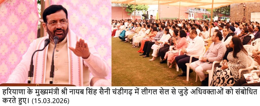 ਚੰਡੀਗੜ੍ਹ, 15 ਮਾਰਚ – ਹਰਿਆਣਾ ਦੇ ਮੁੱਖ ਮੰਤਰੀ ਸ਼੍ਰੀ ਨਾਇਬ ਸਿੰਘ ਸੈਣੀ ਨੇ ਕਿਹਾ ਕਿ ਕਾਨੂੰਨੀ ਪੇਸ਼ਾ ਸਿਰਫ਼ ਰੋਜ਼ੀ-ਰੋਟੀ ਦਾ ਸਾਧਨ ਨਹੀਂ ਹੈ, ਸਗੋਂ ਨਿਆਂ, ਮਨੁੱਖਤਾ ਅਤੇ ਜਨਤਕ ਸੇਵਾ ਲਈ ਸਮਰਪਿਤ ਇੱਕ ਡੂੰਘੀ ਜ਼ਿੰਮੇਵਾਰੀ ਹੈ। ਉਨ੍ਹਾਂ ਕਿਹਾ ਕਿ ਵਕੀਲ ਲੋਕਤੰਤਰੀ ਨਿਆਂ ਪ੍ਰਣਾਲੀ ਦੇ ਮਹੱਤਵਪੂਰਨ ਥੰਮ੍ਹ ਹਨ; ਉਹ ਨਾ ਸਿਰਫ਼ ਸਮਾਜ ਦੇ ਕਮਜ਼ੋਰ, ਵਾਂਝੇ ਅਤੇ ਲੋੜਵੰਦ ਵਰਗਾਂ ਲਈ ਨਿਆਂ ਪ੍ਰਾਪਤ ਕਰਨ ਵਿੱਚ ਮਹੱਤਵਪੂਰਨ ਭੂਮਿਕਾ ਨਿਭਾਉਂਦੇ ਹਨ, ਸਗੋਂ ਸਮਾਜਿਕ ਪਰਿਵਰਤਨ, ਨੈਤਿਕ ਕਦਰਾਂ-ਕੀਮਤਾਂ ਨੂੰ ਕਾਇਮ ਰੱਖਣ ਅਤੇ ਰਾਸ਼ਟਰ ਨਿਰਮਾਣ ਵਿੱਚ ਵੀ ਮੋਹਰੀ ਯੋਗਦਾਨ ਪਾਉਂਦੇ ਹਨ।