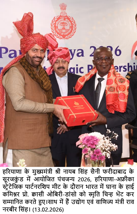 चंडीगढ़, 13 फरवरी – फरीदाबाद के सूरजकुंड में शुक्रवार को आयोजित हरियाणा–अफ्रीका रणनीतिक साझेदारी बैठक के दौरान विभिन्न अफ्रीकी देशों के राजदूतों एवं उच्चायुक्तों ने हरियाणा के साथ कौशल विकास, उद्यमिता, औद्योगिक निवेश, कृषि, खाद्य प्रसंस्करण, आईटी, पर्यटन और सांस्कृतिक सहयोग के क्षेत्रों में साझेदारी को और मजबूत करने की इच्छा व्यक्त की। अफ्रीकी देशों और हरियाणा सरकार के सहयोग से इन क्षेत्रों में युवाओं के लिए रोजगार के अवसर सृजित होंगे।