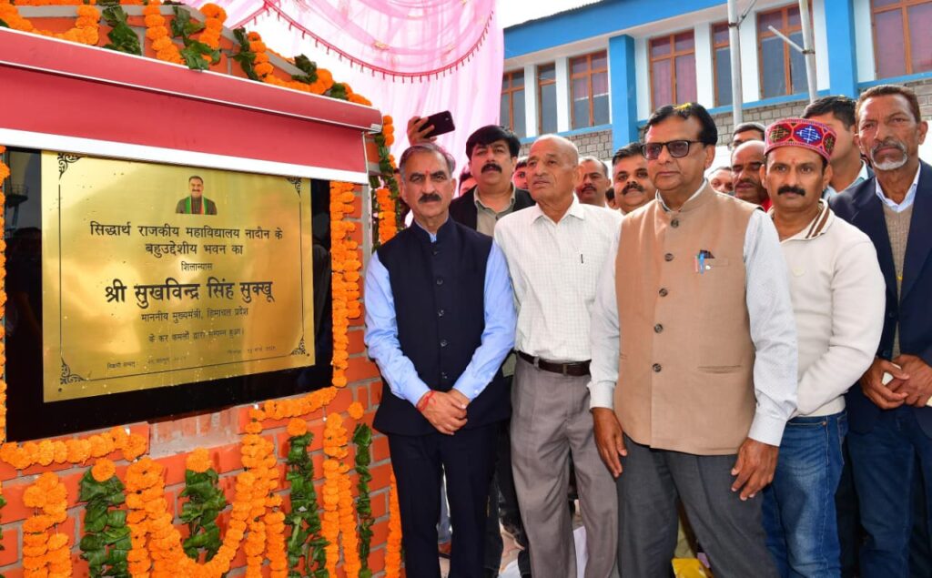 मुख्यमंत्री ने नादौन राजकीय महाविद्यालय में 17.22 करोड़ रुपये की लागत से बनने वाले बहुद्देश्यीय हॉल का शिलान्यास भी किया।