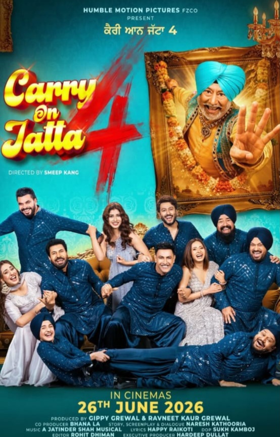 ਕੈਰੀ ਆਨ ਜੱਟਾ 4: ‘ਹੰਬਲ ਮੋਸ਼ਨ ਪਿਕਚਰਸ ਐਫ.ਜੈਡ.ਸੀ.ਓ’ ਵੱਲੋਂ ਪੇਸ਼ ਕੀਤੀ ਜਾ ਰਹੀ ਇਸ ਫ਼ਿਲਮ ਦਾ ਲੇਖ਼ਣ ਨਰੇਸ਼ ਕਥੂਰੀਆ ਵੱਲੋਂ ਕੀਤਾ ਗਿਆ ਹੈ ਜਦਕਿ ਨਿਰਦੇਸ਼ਨ ਦੀ ਜ਼ਿੰਮੇਵਾਰੀ ਸਮੀਪ ਕੰਗ ਵੱਲੋਂ ਸੰਭਾਲੀ ਗਈ ਹੈ। ਨਿਰਮਾਤਾ ਗਿੱਪੀ ਗਰੇਵਾਲ ਅਤੇ ਰਵਨੀਤ ਕੌਰ ਗਰੇਵਾਲ ਵੱਲੋਂ ਬਣਾਈ ਗਈ ਇਹ ਫ਼ਿਲਮ ਸਮੀਪ ਕੰਗ ਦੇ ਨਿਰਦੇਸ਼ਕ ਵਜੋਂ ਇਸ ਸਾਲ ਰਿਲੀਜ਼ ਹੋਣ ਵਾਲੀ ਦੂਜੀ ਫ਼ਿਲਮ ਹੋਵੇਗੀ, ਜੋ ਹਾਲ ਹੀ ਦੇ ਦਿਨਾਂ ਵਿੱਚ ਸਾਹਮਣੇ ਆਈ ‘ਵਿਆਹ ਕਰਤਾਰੇ ਦਾ’ ਵੀ ਦਰਸ਼ਕਾਂ ਸਨਮੁੱਖ ਕਰ ਚੁੱਕੇ ਹਨ।