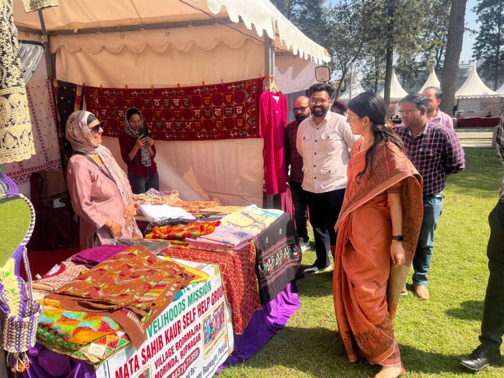 ਕਰਾਫਟ ਮੇਲੇ ਦੌਰਾਨ ਮਾਨਯੋਗ ਵਧੀਕ ਡਿਪਟੀ ਕਮਿਸ਼ਨਰ (ਪੇਂਡੂ ਵਿਕਾਸ) ਰੂਪਨਗਰ ਚੰਦਰ ਜਯੋਤੀ ਸਿੰਘ ਅਤੇ ਅਸਿਸਟੈਂਟ ਕਮਿਸ਼ਨਰ ਅਭਿਮੰਨਯੂ ਮਲਿਕ ਵੱਲੋਂ ਵੱਖ-ਵੱਖ ਸਟਾਲਾਂ ਦਾ ਨਿਰੀਖਣ ਕੀਤਾ ਗਿਆ। ਉਨ੍ਹਾਂ ਨੇ ਸੈਲਫ ਹੈਲਪ ਗਰੁੱਪਾਂ ਦੇ ਮੈਂਬਰਾਂ ਦੀ ਹੌਂਸਲਾ ਅਫ਼ਜ਼ਾਈ ਕਰਦਿਆਂ ਕਿਹਾ ਕਿ ਅਜਿਹੇ ਮੇਲੇ ਪੇਂਡੂ ਆਜੀਵਿਕਾ ਨੂੰ ਮਜ਼ਬੂਤੀ ਦੇਣ ਦੇ ਨਾਲ-ਨਾਲ ਸਵੈਰੋਜ਼ਗਾਰ ਨੂੰ ਉਤਸ਼ਾਹਿਤ ਕਰਦੇ ਹਨ ।