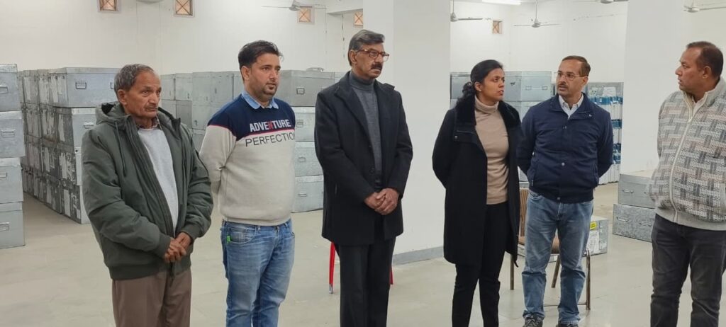 ਹੁਸ਼ਿਆਰਪੁਰ, 30 ਦਸੰਬਰ :- ਭਾਰਤ ਚੋਣ ਕਮਿਸ਼ਨ ਦੇ ਨਿਰਦੇਸ਼ਾਂ ਤਹਿਤ ਅੱਜ ਡਿਪਟੀ ਕਮਿਸ਼ਨਰ-ਕਮ-ਜ਼ਿਲ੍ਹਾ ਚੋਣ ਅਫ਼ਸਰ ਆਸ਼ਿਕਾ ਜੈਨ ਵੱਲੋਂ ਜ਼ਿਲ੍ਹਾ ਪੱਧਰ ’ਤੇ ਬਣਾਏ ਗਏ ਈ.ਵੀ.ਐਮ ਵੇਅਰਹਾਊਸ ਦੀ ਦਸੰਬਰ 2025 ਦੀ ਤਿਮਾਹੀ ਪੜਤਾਲ ਕੀਤੀ ਗਈ। ਇਸ ਮੌਕੇ ਵੱਖ-ਵੱਖ ਰਾਜਨੀਤਿਕ ਪਾਰਟੀਆਂ ਦੇ ਨੁਮਾਇੰਦੇ ਵੀ ਮੌਜੂਦ ਸਨ।