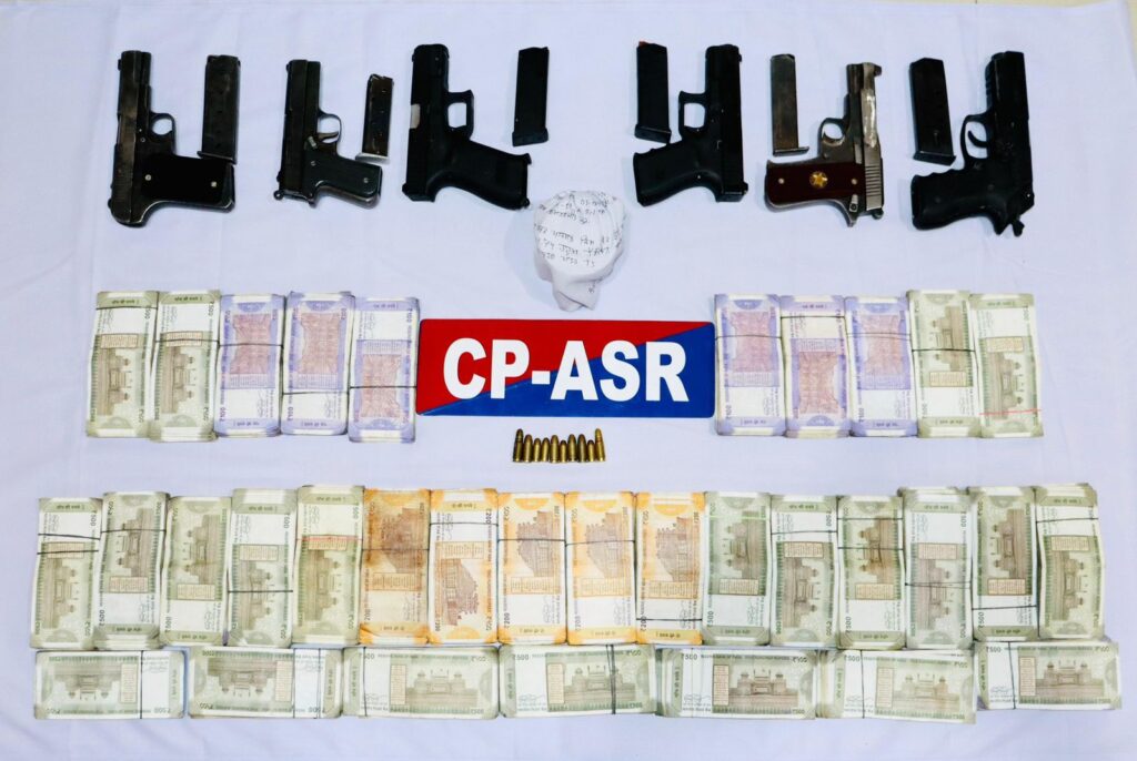 ਪੁਲਿਸ ਕਮਿਸ਼ਨਰ (ਸੀਪੀ) ਅੰਮ੍ਰਿਤਸਰ ਗੁਰਪ੍ਰੀਤ ਸਿੰਘ ਭੁੱਲਰ ਨੇ ਕਾਰਵਾਈ ਸੰਬੰਧੀ ਵੇਰਵੇ ਸਾਂਝੇ ਕਰਦਿਆਂ ਕਿਹਾ ਕਿ ਸਰਹੱਦ ਪਾਰ ਦੇ ਤਸਕਰੀ ਸਬੰਧਾਂ ਬਾਰੇ ਪੁਖਤਾ ਤੇ ਗੁਪਤ ਜਾਣਕਾਰੀ ’ਤੇ ਕਾਰਵਾਈ ਕਰਦਿਆਂ ਪੁਲਿਸ ਟੀਮਾਂ ਨੇ ਸਿਮਰਨਜੀਤ ਉਰਫ਼ ਮੰਨੂ, ਮੋਲਕਦੀਪ ਸਿੰਘ, ਗੁਰਪ੍ਰੀਤ ਉਰਫ਼ ਗੋਪੀ, ਸੁਖਰਾਜ ਉਰਫ਼ ਜੋਗਾ ਅਤੇ ਸਾਜਨ ਉਰਫ਼ ਗੁਰਸਾਜਨ ਉਰਫ਼ ਲੱਡਾ ਨੂੰ ਇੱਕ ਕਾਰ ਸਮੇਤ ਗ੍ਰਿਫ਼ਤਾਰ ਕੀਤਾ ਹੈ ਅਤੇ ਉਨ੍ਹਾਂ ਦੇ ਕਬਜ਼ੇ ਵਿੱਚੋਂ ਦੋ .32 ਬੋਰ ਪਿਸਤੌਲ ਬਰਾਮਦ ਕੀਤੇ ਹਨ। ਉਨ੍ਹਾਂ ਕਿਹਾ ਕਿ ਹੋਰ ਪੁੱਛਗਿੱਛ ਤੋਂ ਬਾਅਦ ਹੋਈਆਂ ਬਰਾਮਦਗੀਆਂ ਦੌਰਾਨ ਚਾਰ ਹੋਰ ਪਿਸਤੌਲ, 115 ਗ੍ਰਾਮ ਹੈਰੋਇਨ ਅਤੇ 11.90 ਲੱਖ ਰੁਪਏ ਦੀ ਡਰੱਗ ਮਨੀ ਜ਼ਬਤ ਕੀਤੀ ਗਈ, ਜੋ ਸੰਗਠਿਤ ਗੈਰ-ਕਾਨੂੰਨੀ ਹਥਿਆਰਾਂ ਅਤੇ ਨਸ਼ੀਲੇ ਪਦਾਰਥਾਂ ਦੀਆਂ ਗਤੀਵਿਧੀਆਂ ਵਿੱਚ ਉਨ੍ਹਾਂ ਦੀ ਸ਼ਮੂਲੀਅਤ ਦੀ ਪੁਸ਼ਟੀ ਕਰਦੀ ਹੈ।