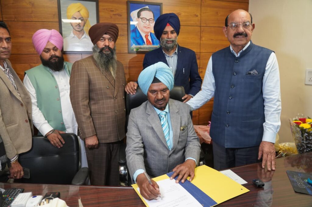 ਚੰਡੀਗੜ੍ਹ, 18 ਫਰਵਰੀ:-ਪੰਜਾਬ ਦੇ ਕੈਬਨਿਟ ਮੰਤਰੀਆਂ ਮੋਹਿੰਦਰ ਭਗਤ, ਲਾਲਜੀਤ ਸਿੰਘ ਭੁੱਲਰ, ਹਰਦੀਪ ਸਿੰਘ ਮੁੰਡੀਆਂ, ਤਰੁਨਪ੍ਰੀਤ ਸਿੰਘ ਸੌਂਦ ਅਤੇ ਡਾ. ਬਲਬੀਰ ਸਿੰਘ ਦੀ ਹਾਜ਼ਰੀ ਵਿੱਚ, ਮੇਜਰ (ਡਾ.) ਗੁਰਚਰਨ ਸਿੰਘ, ਸੇਵਾਮੁਕਤ ਨੇ ਅੱਜ ਪੰਜਾਬ ਐਕਸ-ਸਰਵਿਸਮੈਨ ਕਾਰਪੋਰੇਸ਼ਨ (ਪੈਸਕੋ) ਦੇ ਚੇਅਰਮੈਨ ਵਜੋਂ ਅਹੁਦਾ ਸੰਭਾਲਿਆ।