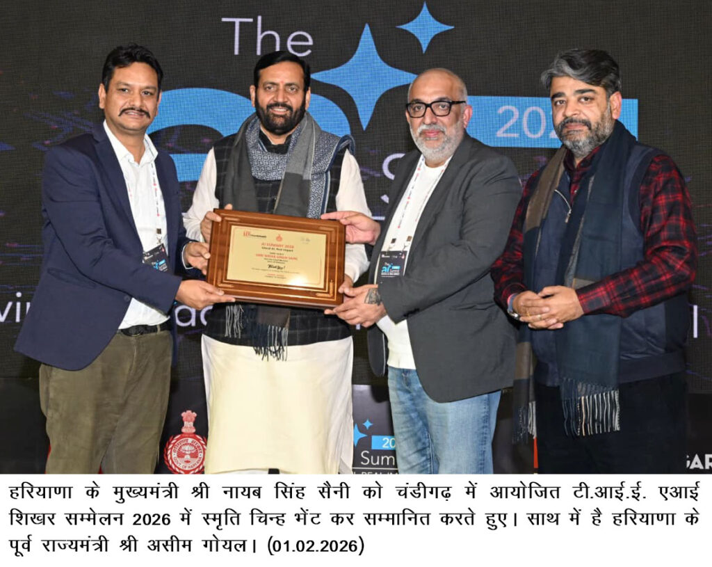 मुख्यमंत्री शनिवार देर सायं चंडीगढ़  में आयोजित टी.आई.ई. एआई शिखर सम्मेलन–2026 को संबोधित कर रहे थे। उन्होंने कहा कि दि इंडस एंटरप्रेन्योर्स (TiE) चंडीगढ़ द्वारा आयोजित यह शिखर सम्मेलन भविष्य की तकनीक, नवाचार और उद्यमिता को नई दिशा देने वाला सशक्त मंच है।