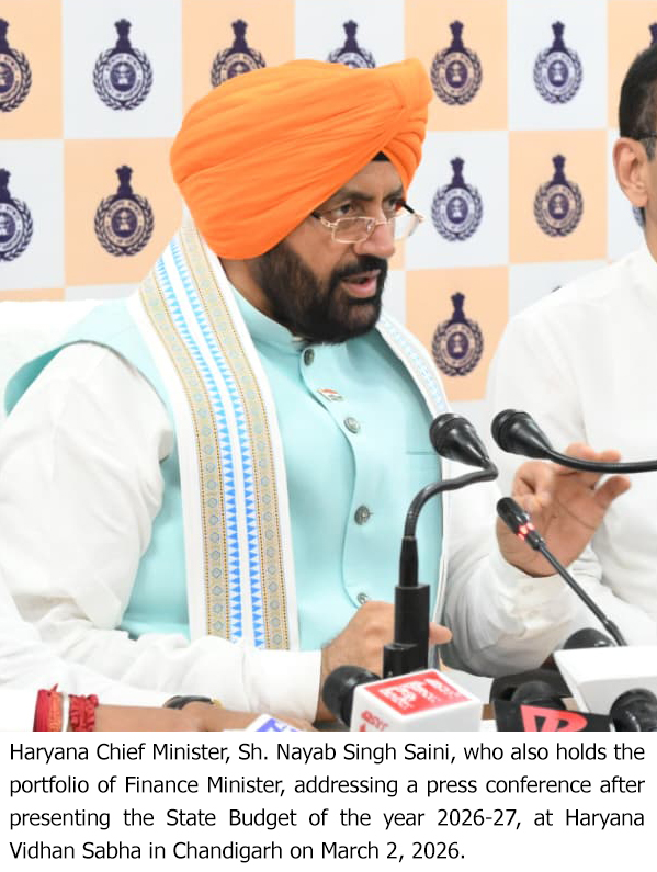 चंडीगढ़, 2 मार्च – हरियाणा के मुख्यमंत्री श्री नायब सिंह सैनी ने हरियाणा विधानसभा में वर्ष 2026-27 का बजट प्रस्तुत करते हुए शिक्षा और मानव विकास को सरकार की सर्वोच्च प्राथमिकता बताया। मुख्यमंत्री ने कहा कि “मानव विकास किसी भी सशक्त और समावेशी समाज की आधारशिला है। हर बच्चे को गुणवत्तापूर्ण शिक्षा, बेहतर स्वास्थ्य सुविधाएं, कौशल विकास और खेल के अवसर उपलब्ध कराना हमारी सरकार का संकल्प है।”