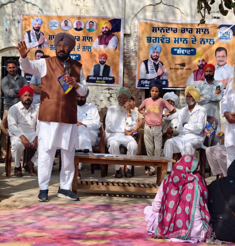 ਪਿੰਡ ਜਲਵੇੜਾ ਵਿਖੇ ਭਰਵੇਂ ਇਕੱਠ ਨੂੰ ਸੰਬੋਧਨ ਕਰਦਿਆਂ ਵਿਧਾਇਕ ਪ੍ਰਿੰਸੀਪਲ ਬੁੱਧ ਰਾਮ ਨੇ ਸਰਕਾਰ ਦੀਆਂ ਪ੍ਰਾਪਤੀਆਂ ਦੇ ਮੁੱਖ ਨੁਕਤੇ ਸਾਂਝੇ ਕਰਦਿਆਂ ਦੱਸਿਆ ਕਿ ‘ਮਾਵਾਂ-ਧੀਆਂ ਸਤਿਕਾਰ ਯੋਜਨਾ’ ਤਹਿਤ ਐਸ.ਸੀ. ਵਰਗ ਦੀਆਂ ਔਰਤਾਂ ਨੂੰ 1500 ਰੁਪਏ ਅਤੇ ਜਨਰਲ ਵਰਗ ਦੀਆਂ ਔਰਤਾਂ ਨੂੰ 1000 ਰੁਪਏ ਮਹੀਨਾਵਾਰ ਦੇਣ ਦੀ ਇਤਿਹਾਸਕ ਯੋਜਨਾ ਲਾਗੂ ਕੀਤੀ ਗਈ ਹੈ। ਉਨ੍ਹਾਂ ਦੱਸਿਆ ਕਿ ਸੂਬੇ ਦੇ 90 ਫ਼ੀਸਦੀ ਪਰਿਵਾਰਾਂ ਨੂੰ 600 ਯੂਨਿਟ ਮੁਫ਼ਤ ਬਿਜਲੀ ਮਿਲ ਰਹੀ ਹੈ। ਕਿਸਾਨਾਂ ਲਈ ਪਹਿਲੀ ਵਾਰ ਦਿਨ ਵੇਲੇ ਬਿਜਲੀ ਅਤੇ 80 ਫ਼ੀਸਦੀ ਖੇਤਾਂ ਤੱਕ ਨਹਿਰੀ ਪਾਣੀ ਪਹੁੰਚਾਇਆ ਗਿਆ ਹੈ।ਉਨ੍ਹਾਂ ਦੱਸਿਆ ਕਿ ਪਾਰਦਰਸ਼ੀ ਤਰੀਕੇ ਨਾਲ 65,000 ਨੌਜਵਾਨਾਂ ਨੂੰ ਸਰਕਾਰੀ ਨੌਕਰੀਆਂ ਦਿੱਤੀਆਂ ਗਈਆਂ ਹਨ। ਮਿਆਰੀ ਸਿਹਤ ਯੋਜਨਾਵਾਂ ਨੂੰ ਜਮੀਨੀ ਪੱਧਰ ਉਤੇ ਲਾਗੂ ਕਰਨ ਲਈ ਸੂਬੇ ਭਰ ਵਿੱਚ ‘ਆਮ ਆਦਮੀ ਕਲੀਨਿਕ’ ਸਫਲਤਾਪੂਰਵਕ ਚੱਲ ਰਹੇ ਹਨ।