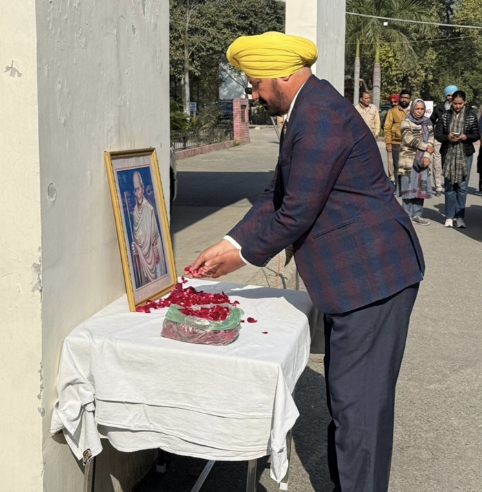 ਫ਼ਰੀਦਕੋਟ 30 ਜਨਵਰੀ () ਅੱਜ ਬਲੀਦਾਨ ਦਿਵਸ ਮੌਕੇ ਸੁਤੰਤਰਤਾ ਸੰਗਰਾਮ ਦੌਰਾਨ ਆਪਣੀਆਂ ਜਾਨਾਂ ਦੇਸ਼-ਕੌਮ ਲਈ ਵਾਰਨ ਵਾਲੇ ਸ਼ਹੀਦਾਂ ਨੂੰ ਸ਼ਰਧਾ ਦੇ ਫੁੱਲ ਭੇਟ ਕਰਨ ਲਈ ਜ਼ਿਲਾ ਪ੍ਰਸ਼ਾਸਨ ਵੱਲੋਂ ਜ਼ਿਲ੍ਹਾ ਪ੍ਰਬੰਧਕੀ ਕੰਪਲੈਕਸ ਵਿਖੇ ਸ਼ਰਧਾਂਜਲੀ ਸਮਾਰੋਹ ਦਾ ਆਯੋਜਨ ਕੀਤਾ ਗਿਆ। ਇਸ ਮੌਕੇ ਡਿਪਟੀ ਕਮਿਸ਼ਨਰ ਮੈਡਮ ਪੂਨਮਦੀਪ ਕੌਰ ਨੇ ਰਾਸ਼ਟਰ ਪਿਤਾ ਮਹਾਤਮਾ ਗਾਂਧੀ ਦੀ ਤਸਵੀਰ ’ਤੇ ਫ਼ੁੱਲ ਭੇਟ ਕਰਕੇ ਸ਼ਰਧਾਂਜਲੀ ਭੇਟ ਕੀਤੀ।