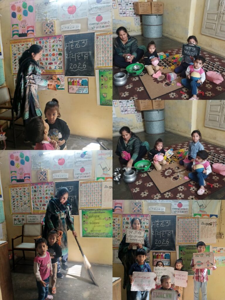 ਇਸ ਦੌਰਾਨ ਬੱਚਿਆਂ ਨੂੰ ਹੱਥ ਧੋਣ ਦੀ ਸਹੀ ਵਿਧੀ, ਸਾਫ਼-ਸੁਥਰੇ ਕੱਪੜੇ ਪਹਿਨਣ ਅਤੇ ਆਪਣੇ ਆਲੇ-ਦੁਆਲੇ ਦੀ ਸਫ਼ਾਈ ਬਣਾਈ ਰੱਖਣ ਬਾਰੇ ਜਾਣਕਾਰੀ ਦਿੱਤੀ ਜਾ ਰਹੀ ਹੈ। ਆਂਗਣਵਾੜੀ ਵਰਕਰਾਂ ਵੱਲੋਂ ਮਾਪਿਆਂ ਨਾਲ ਮੀਟਿੰਗਾਂ ਕਰਕੇ ਘਰ ਅਤੇ ਆਸ-ਪਾਸ ਦੇ ਵਾਤਾਵਰਣ ਨੂੰ ਸਾਫ਼ ਰੱਖਣ ਦੀ ਮਹੱਤਤਾ ਬਾਰੇ ਵੀ ਜਾਗਰੂਕ ਕੀਤਾ ਜਾ ਰਿਹਾ ਹੈ। ਇਸ ਤੋਂ ਇਲਾਵਾ ਆਂਗਣਵਾੜੀ ਸੈਂਟਰਾਂ ਦੀ ਸਫ਼ਾਈ, ਰੰਗ-ਰੋਗਨ ਅਤੇ ਪੀਣ ਵਾਲੇ ਪਾਣੀ ਦੀ ਸੁਰੱਖਿਆ ‘ਤੇ ਵੀ ਖਾਸ ਧਿਆਨ ਦਿੱਤਾ ਜਾ ਰਿਹਾ ਹੈ।