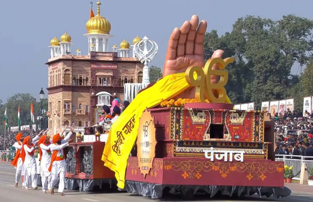 ਚੰਡੀਗੜ੍ਹ/ਨਵੀਂ ਦਿੱਲੀ, 26 ਜਨਵਰੀ:-ਗਣਤੰਤਰ ਦਿਵਸ ਮੌਕੇ ਕਰਤੱਵਿਆ ਪੱਥ ‘ਤੇ ਪੰਜਾਬ ਦੀ ਝਾਕੀ ਰਾਹੀਂ ਪੇਸ਼ ਸ੍ਰੀ ਗੁਰੂ ਤੇਗ਼ ਬਹਾਦਰ ਸਾਹਿਬ ਜੀ ਦੀ ਲਾਸਾਨੀ ਸ਼ਹਾਦਤ ਨੂੰ ਪੇਸ਼ ਕੀਤਾ ਗਿਆ ਜਿਸ ਨੂੰ ਸਭ ਨੇ ਸ਼ਰਧਾਂਜਲੀ ਦਿੱਤੀ, ਇਸ ਝਾਂਕੀ ਨੇ ਆਪਣੇ ਵੱਲ ਧਿਆਨ ਖਿੱਚਦਿਆਂ ਸਮੁੱਚੇ ਦੇਸ਼ ਨੂੰ ਮਾਨਵਤਾ, ਨਿਆਂ ਅਤੇ ਧਰਮ ਦੀ ਰਾਖੀ ਦੇ ਸੰਦੇਸ਼ ਦਿੱਤਾ।