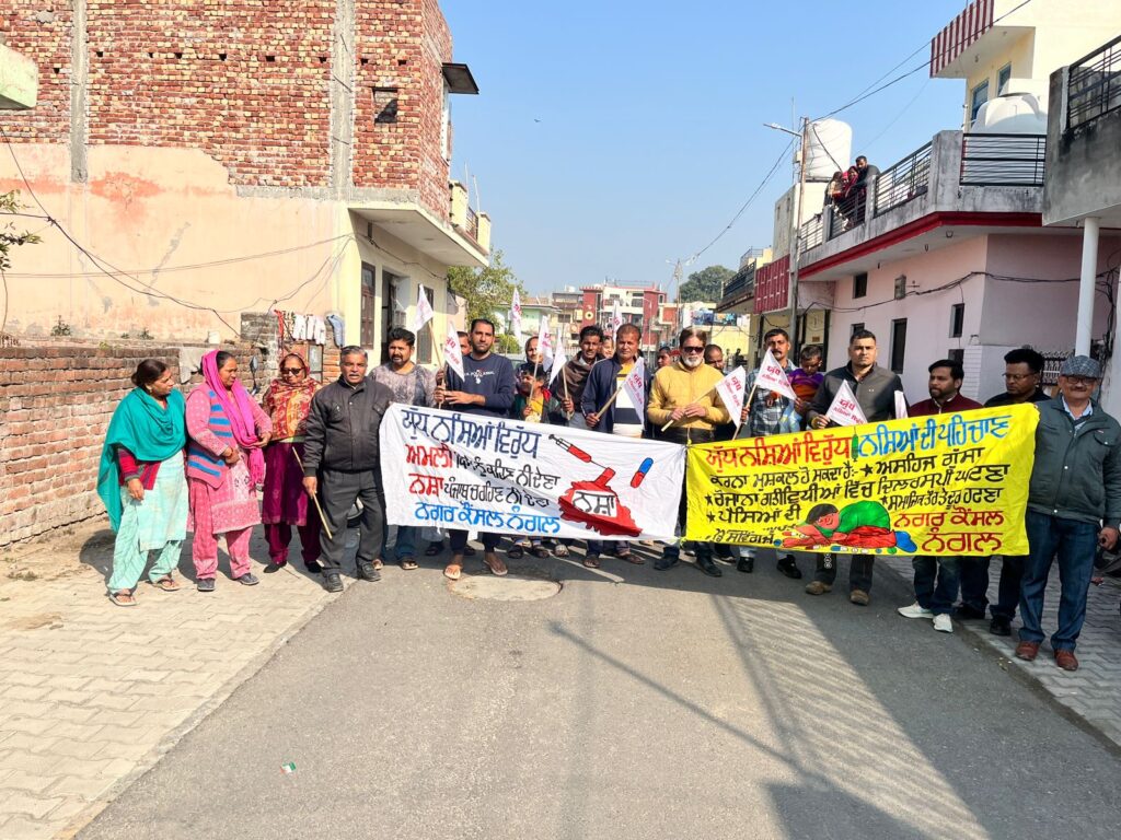 ਨੰਗਲ 11 ਜਨਵਰੀ : ਮੁੱਖ ਮੰਤਰੀ ਪੰਜਾਬ ਸ. ਭਗਵੰਤ ਸਿੰਘ ਮਾਨ ਵੱਲੋਂ ਨਸ਼ਾ ਮੁਕਤ ਸਮਾਜ ਸਿਰਜਣ ਲਈ ਚਲਾਈ ਜਾ ਰਹੀ ਮਹੱਤਵਕਾਂਕਸ਼ੀ ਮੁਹਿੰਮ “ਯੁੱਧ ਨਸ਼ਿਆਂ ਵਿਰੁੱਧ” ਦੇ ਦੂਜੇ ਪੜਾਅ ਤਹਿਤ ਵਾਰਡਾਂ ਅਤੇ ਪਿੰਡਾਂ ਦੇ ਪਹਿਰੇਦਾਰਾਂ ਵੱਲੋਂ ਸ਼ਹਿਰਾਂ ਵਿੱਚ ਨਸ਼ਾ ਤਸਕਰਾਂ ਖਿਲਾਫ਼ ਵਿਆਪਕ ਜਾਗਰੂਕਤਾ ਮੁਹਿੰਮ ਅਰੰਭ ਕੀਤੀ ਗਈ ਹੈ। ਇਹ ਮੁਹਿੰਮ ਆਮ ਲੋਕਾਂ ਦੀ ਭਾਗੀਦਾਰੀ ਨਾਲ ਨਸ਼ਿਆਂ ਦੀ ਸਮੱਸਿਆ ਨੂੰ ਜੜ੍ਹ ਤੋਂ ਖਤਮ ਕਰਨ ਵੱਲ ਇੱਕ ਮਜ਼ਬੂਤ ਕਦਮ ਮੰਨੀ ਜਾ ਰਹੀ ਹੈ।